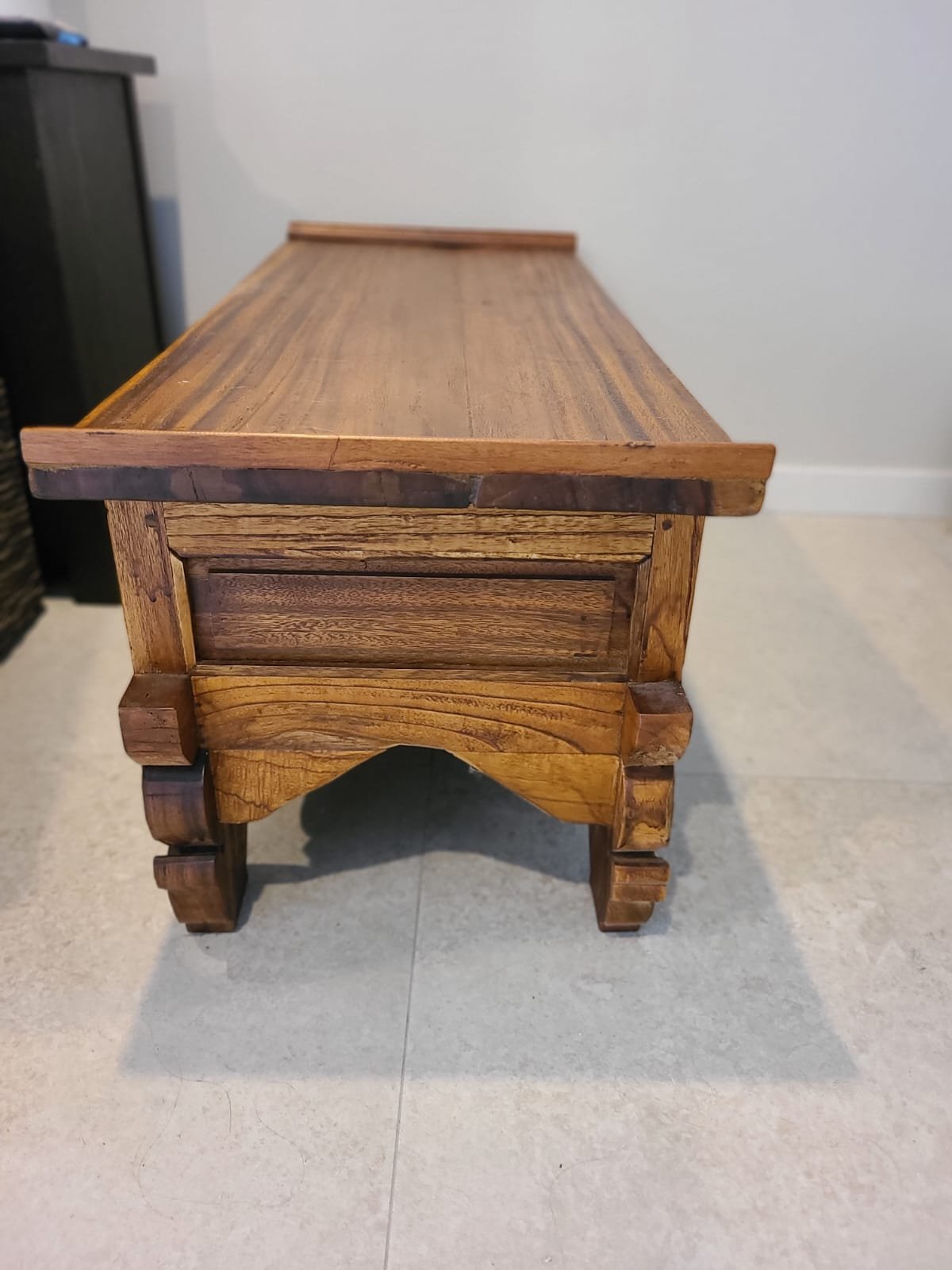 This Javanese teak coffee table brings warmth and character to any space. Crafted from high-quality teak wood native to Java, Indonesia, it boasts rich tones, a natural grain, and a sturdy build. The timeless design makes it suitable for both modern and traditional interiors. Whether placed in a living room, studio, or office, this table adds a grounded, organic touch to your decor.